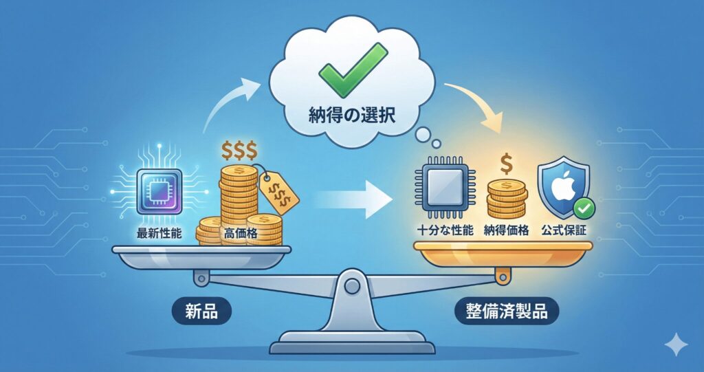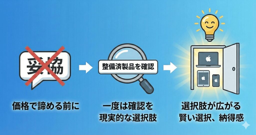 「安くするための妥協」ではなく、「納得して選べる別の選択肢かもしれない」と感じられたことが、整備済製品を検討し始めたきっかけでした。