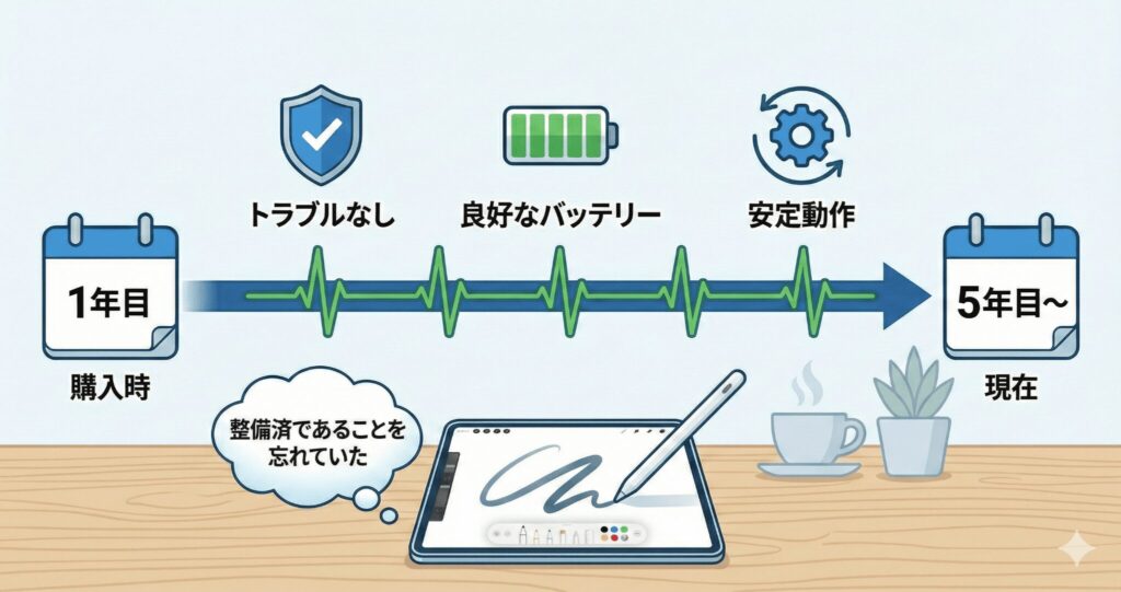 私は過去にAppleの整備済製品でiPad Proを購入していて、5年経過した今でも現役で使い続けています。