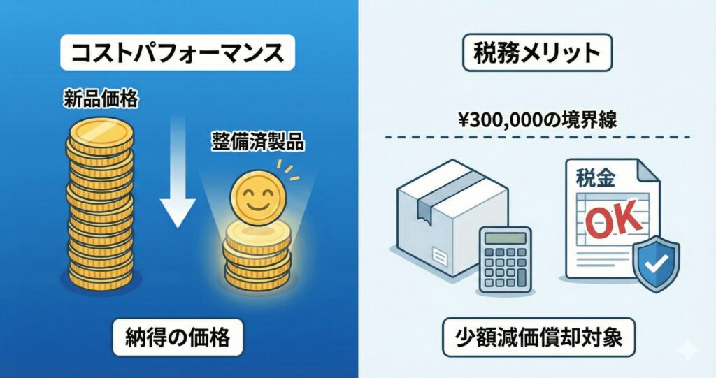 30万円未満で少額減価償却資産の特例を使えるラインに収まったことも、正直大きかったです。