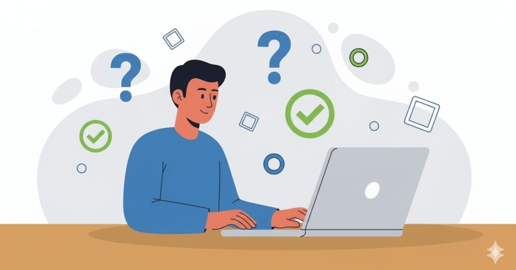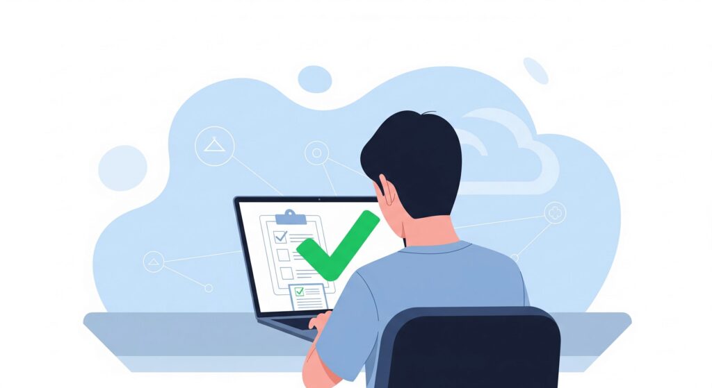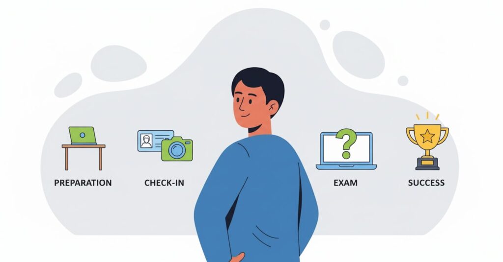 この記事では、私がこれまで15回以上リモート試験を完遂した経験を元に、当日の流れを「①準備」「②チェックイン」「③試験本番」「④終了後」の4つのステップに分け、具体的な注意点やコツを交えながら徹底解説します。